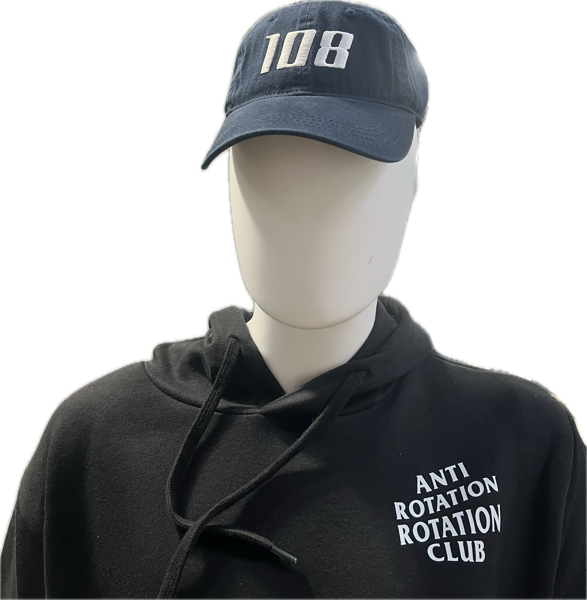 Get ready for a head-turning accessory- the 108 White Logo Patch Hat! Rock the navy snapback and sport our bold white patch, featuring our eye-catching 108 logo. Show off your unique style with this adjustable, must-have hat. (Note: May cause hat envy!)